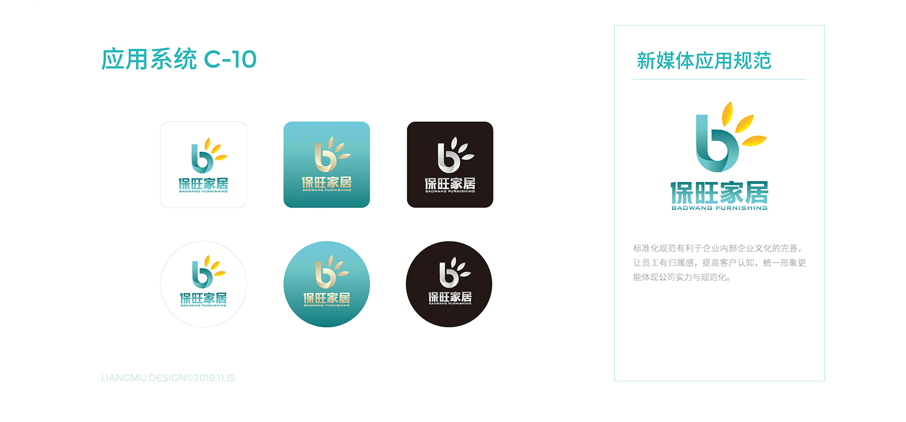 保旺家居標(biāo)志創(chuàng)意源于品牌中文拼音首字母,依據(jù)家居行業(yè)的特征,“B”字母立體螺旋設(shè)計(jì)是測(cè)量角度的拐尺和電鋸齒輪,“W”字母由三個(gè)光彩奪目的金色樹葉代表,象征企業(yè)發(fā)展蒸蒸日上。